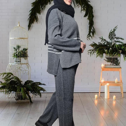 ست بلوز و شلوار بافت زنانه Parnia_Gray مدل 3861