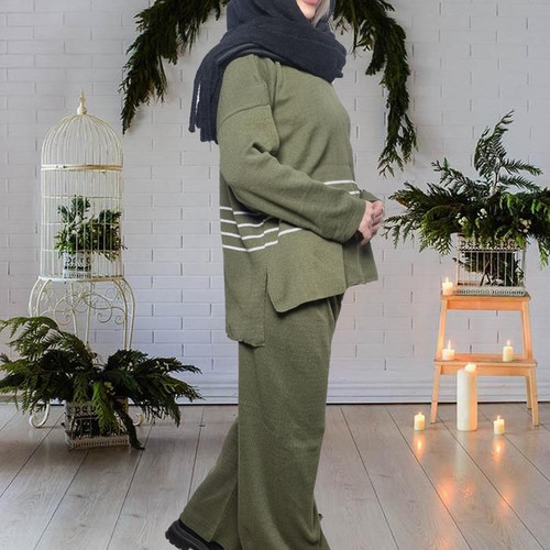 ست بلوز و شلوار بافت زنانه Parnia_Green مدل 3862