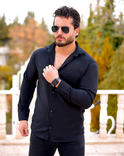 پیراهن مردانه مشکی ساده کد 6275