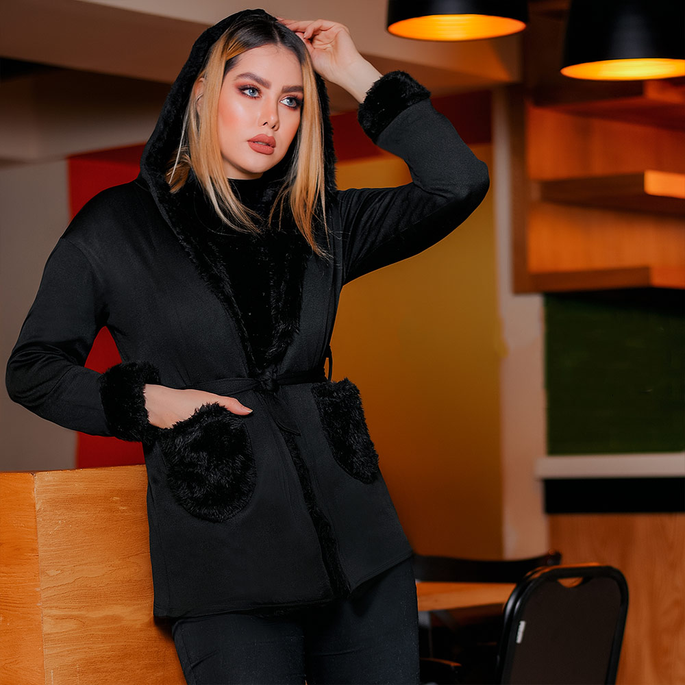 هودی دورس فری سایز، قد ۶۷CM، آستین ۵۸CM، عرض سینه ۴۵CM، لبه و کلاه خزدار، سبک و راحت برای استفاده روزانه.