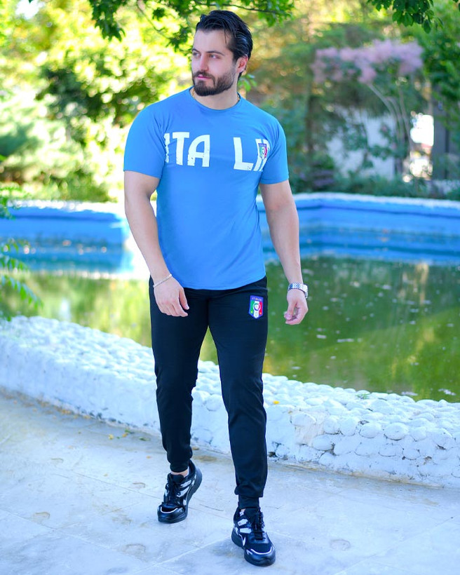 ست تیشرت و شلوار Azzurri آبی کد 6343 با تیشرت اسپان و شلوار ملانژ، فریسایز مناسب L/XL. سبک، راحت و ایدهآل استفاده روزمره.